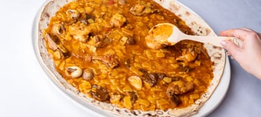 Gazpachos Manchegos con Conejo, Pollo de corral, Pichón, Níscalos y Caracoles Serranos.