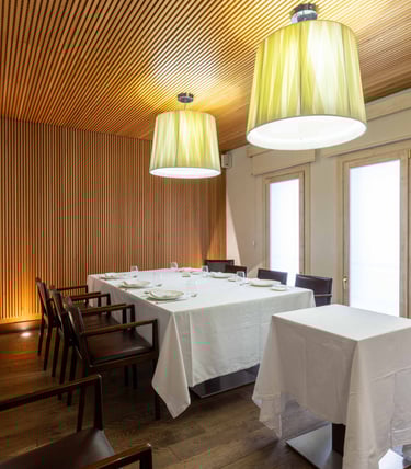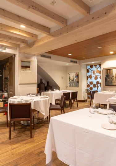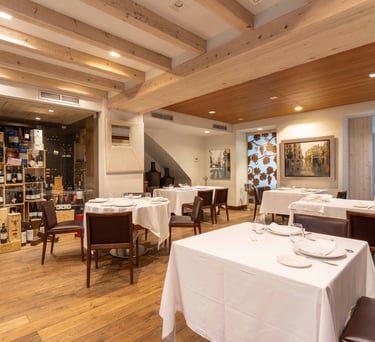 En la zona de barra, el ritmo es más cercano y animado. Es un espacio vivo, heredero del espíritu de los antiguos bares castellanos, donde se disfrutan tapas, vinos y conversación. Un punto de encuentro para quienes buscan un ambiente distendido sin renunciar a la calidad.