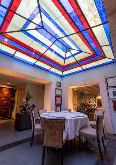 Desde aquellos primeros años, marcados por el esfuerzo, la pulcritud y el cariño al oficio, el mesón fue creciendo sin perder nunca sus raíces. La filosofía de Pascual y Josefa —respeto al producto, atención al detalle y una hospitalidad sincera— se convirtió en el alma del establecimiento. Su legado sigue vivo en cada rincón: en el artesonado de madera, en las paredes de sillería, en las ventanas emplomadas y en la atmósfera cálida que recibe al visitante como si entrara en casa.